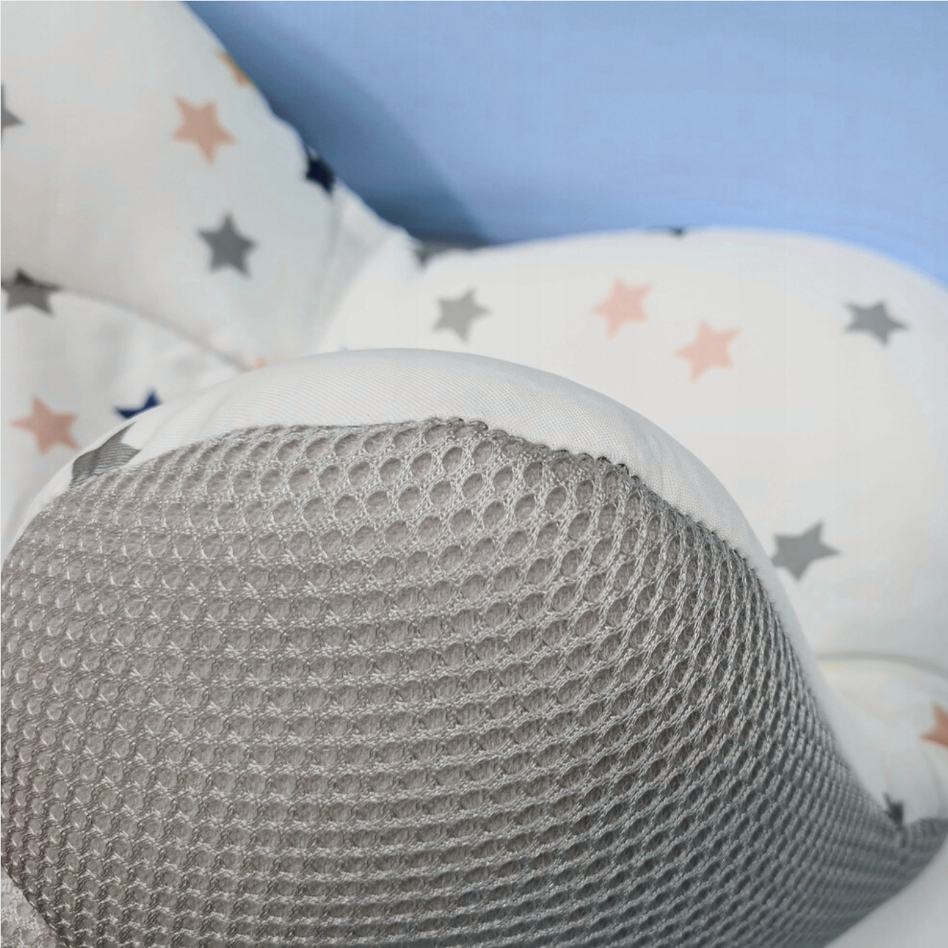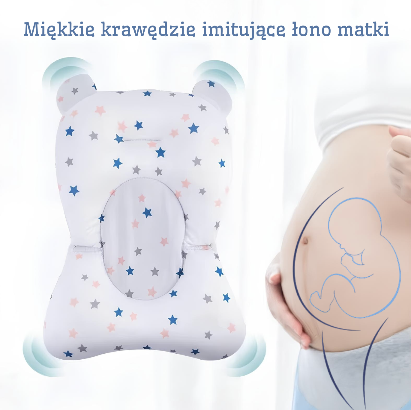 Specjalnie zaprojektowany kształt i miękka konstrukcja poduszki 𝐢𝐦𝐢𝐭𝐮𝐣𝐚̨ 𝐜𝐢𝐞𝐩ł𝐨 𝐢 𝐛𝐞𝐳𝐩𝐢𝐞𝐜𝐳𝐞𝐧́𝐬𝐭𝐰𝐨 ł𝐨𝐧𝐚 𝐦𝐚𝐭𝐤𝐢, które dziecko zna z życia prenatalnego.
