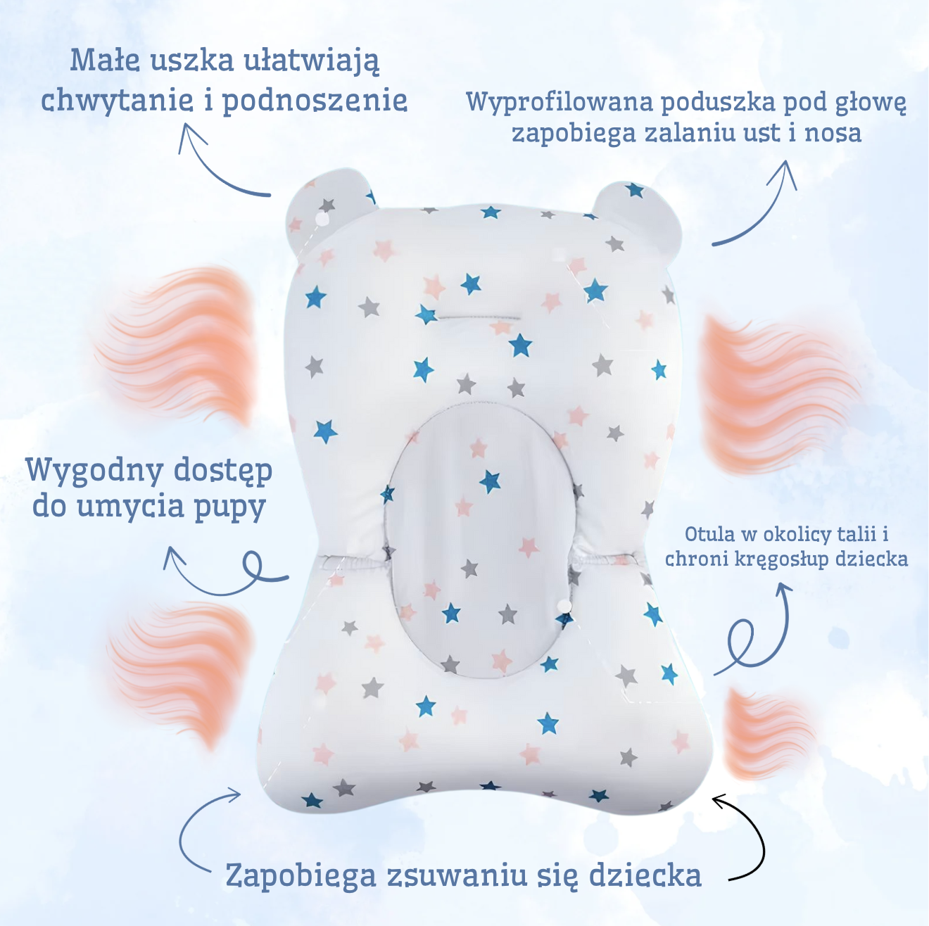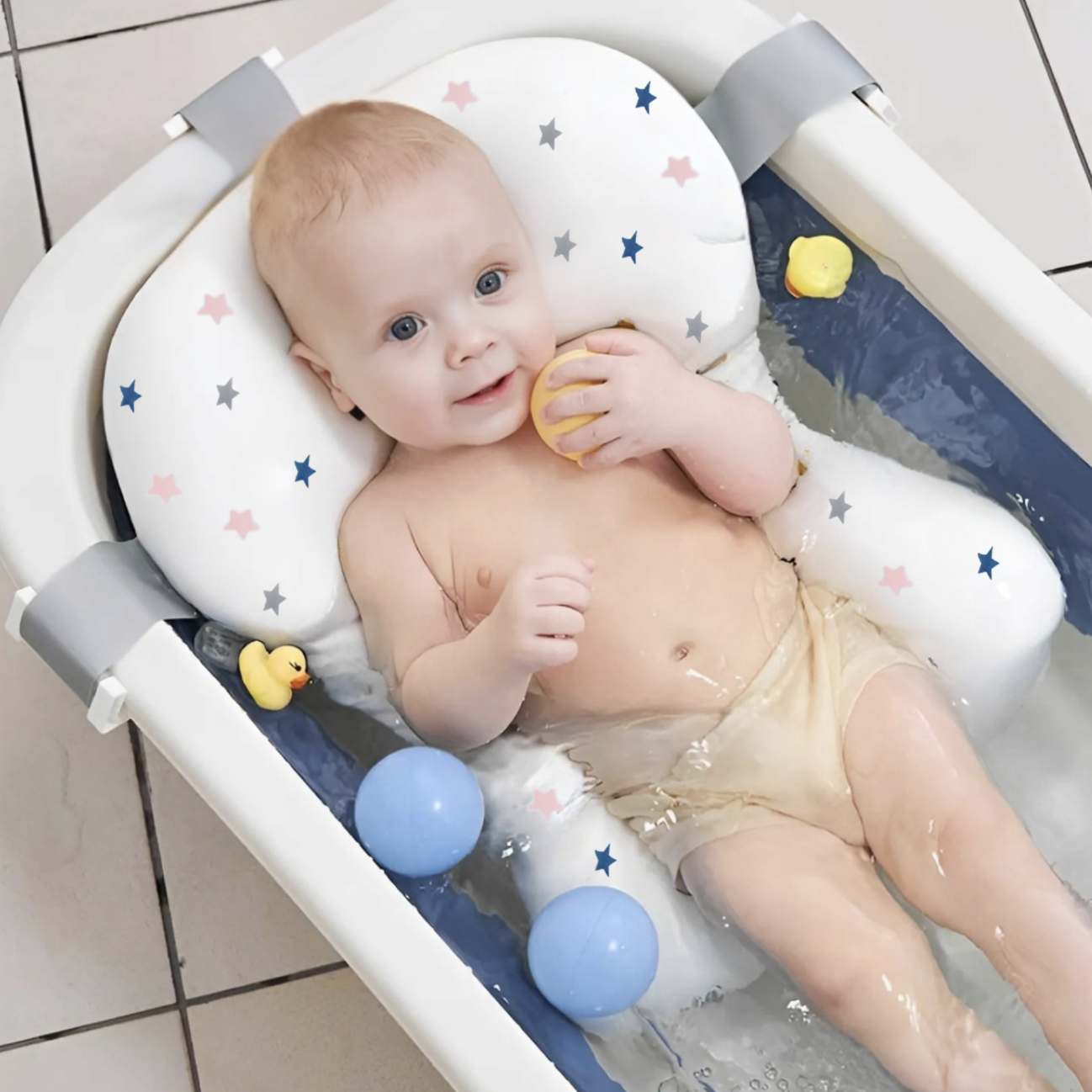 Dzięki tej poduszce nie musisz podtrzymywać dziecka przez całą kąpiel – 𝐦𝐚𝐥𝐮𝐬𝐳𝐞𝐤 𝐥𝐞𝐳̇𝐲 𝐬𝐭𝐚𝐛𝐢𝐥𝐧𝐢𝐞 𝐢 𝐛𝐞𝐳𝐩𝐢𝐞𝐜𝐳𝐧𝐢𝐞, a Ty masz obie ręce wolne.